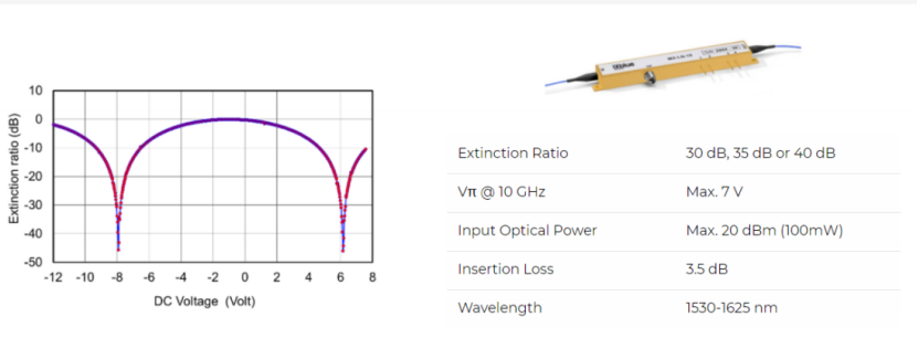1550nm波段,10GHz/20GHz高消光比强度调制器(ER> 30,35,40dB) |