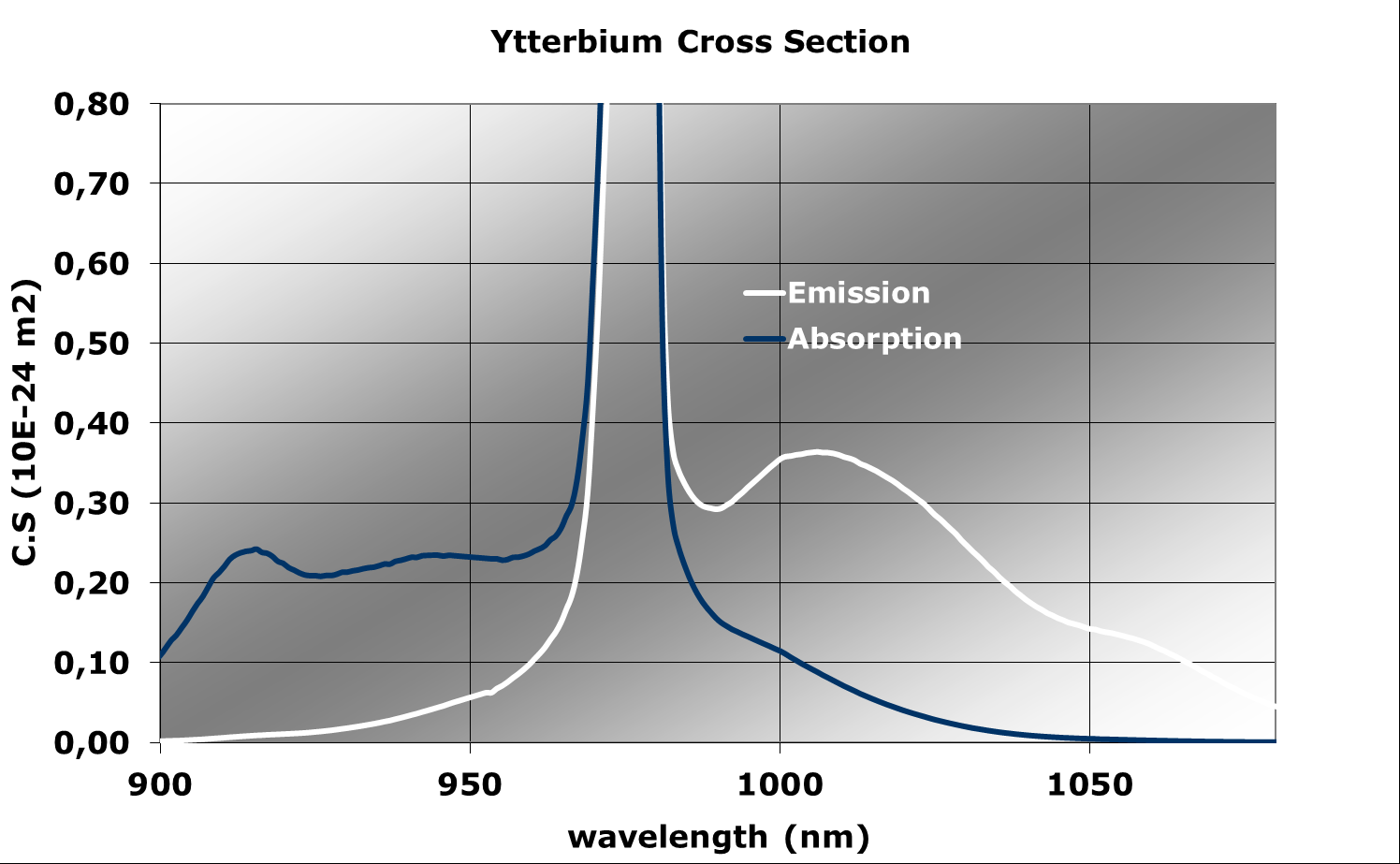 | Yb吸收截面 @ 975nm (m²) | 1,42E-24 |